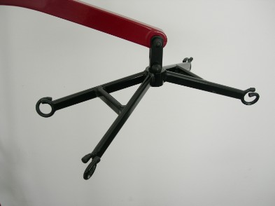 Der Kreuzbügel ermöglicht es, die Gurtschlaufen für Rücken- und Beinteile im Abstand einzuhängen. Der Benutzer wird in bequem zurückgelehnter Position transportiert.